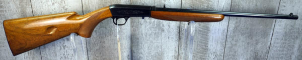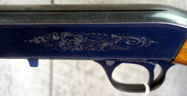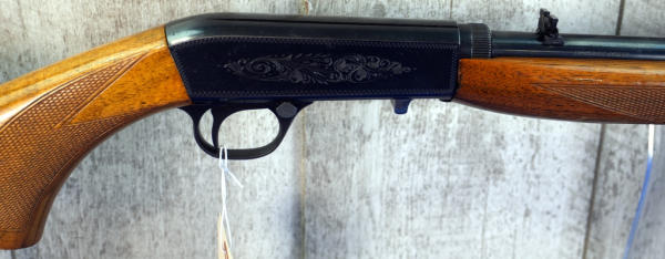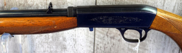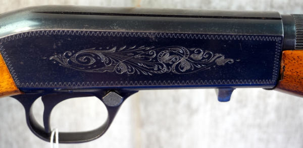 19" BBL; light colored wood stock w/checkering; metal butt plate; factory scroll engraving on receiver; receiver tube in stock; used, has a few small field marks; Belgium; SN#5T27109; A-332