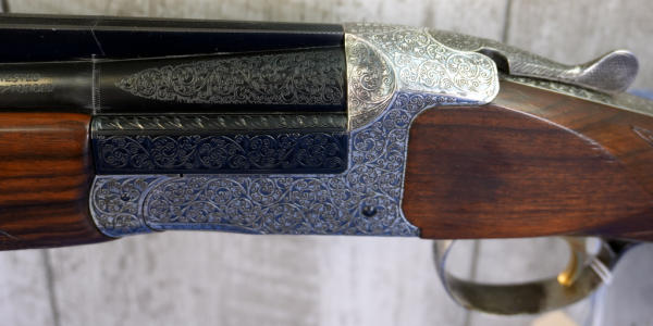 34" VR-Ported BBL; easy break action; gold trigger; highly engraved receiver and BBL; adjustable rubber recoil pad; has use wear; bore is ok, could use a cleaning; mfg. by SKB; Japan; SN#8805601; A-339