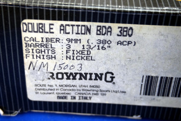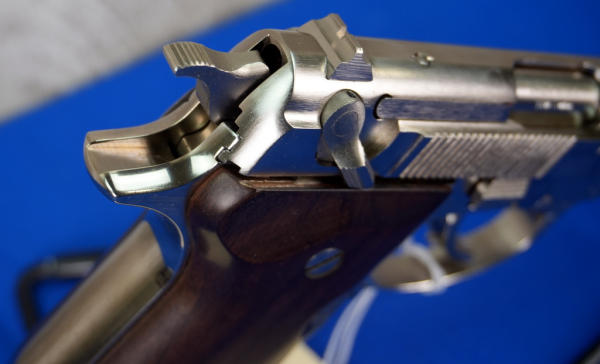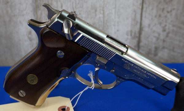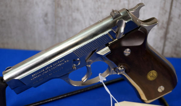 3.75" stainless barrel; smooth wood grips; nickel finish; includes factory box; 2-magazines; Italy; SN#425NM15003; A-318