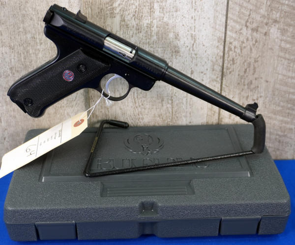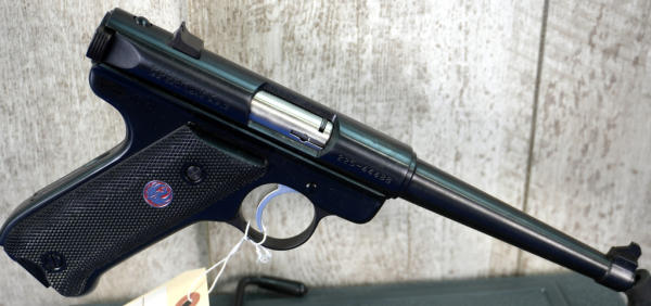 6" Tapered BBL; black plastic checkered grips w/Red Eagle logo; mint & unfired; factory hard case; 2-magazines; USA: SN#225-44488; A-290