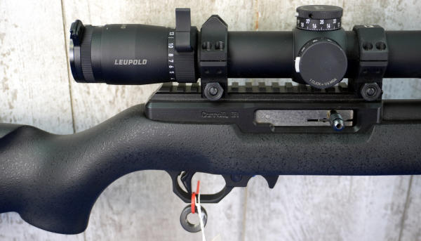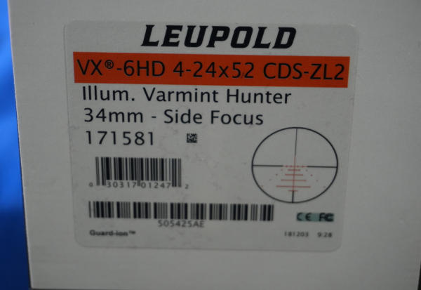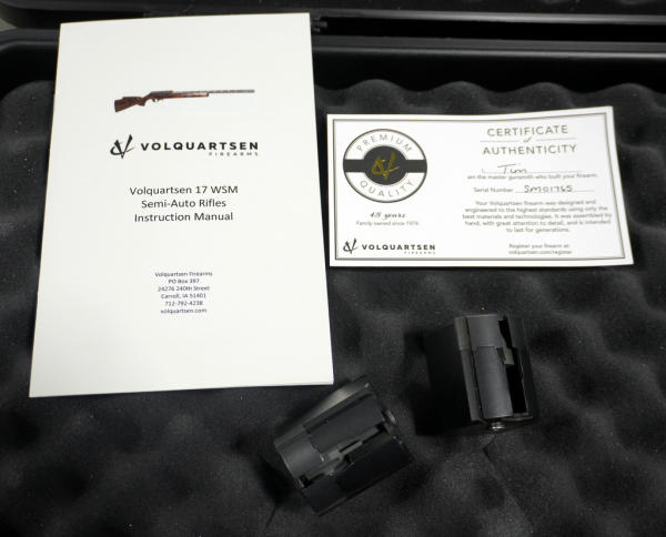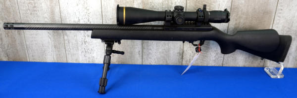 20" Carbon BBL w/2" Flash hider; bi-pod; black synthetic stock; Leupold VX-6HD 4-24x52 scope w/scope box; includes a factory hard carry case; removable magazine; Volquartsen firearms are made in Carroll, IA; SN#SM01765; A-318