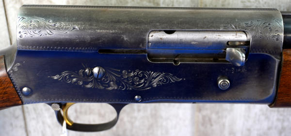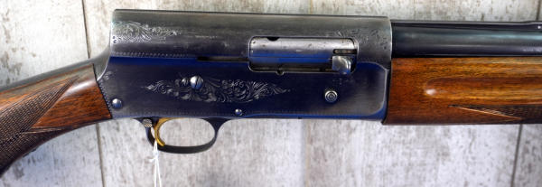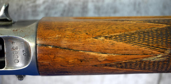 27" VR-BBL; bluing on receiver is thin on edges; wood stock w/checkering, forearm has a crack on bottom side; gold trigger; 2.75"; FC; clean bore; Belgium; SN#2G83820; A-340