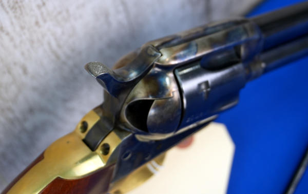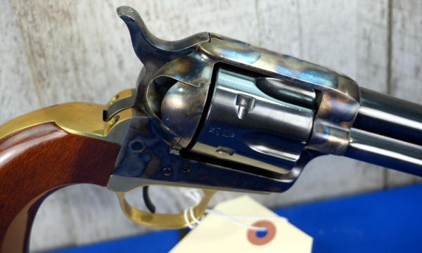5.5" BBL; case hardened receiver w/brass straps & trigger guard; smooth wood grips; 6-shot fixed cylinder; mint; comes w/non-factory hard case; Italy; SN#UL9936; A-347