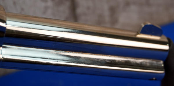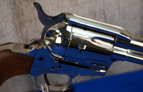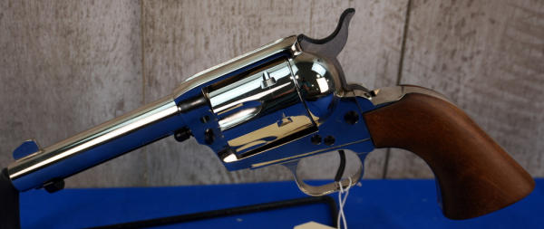 4.75" Barrel; has high polish nickel finish; smooth wood grips; 6-shot fixed cylinder; non-factory hard case; looks unfired and very clean; great finish!; Germany; SN#N9370; A-347