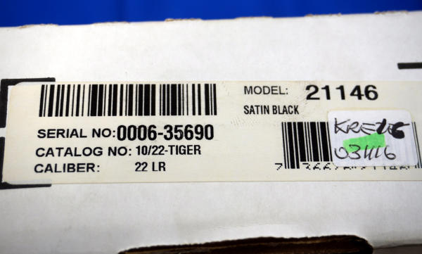 18.5" BBL; mint & unfired; Talo Ed. Tiger engraved wood stock; removable magazine; factory box; USA; SN#0006-35690; A-355