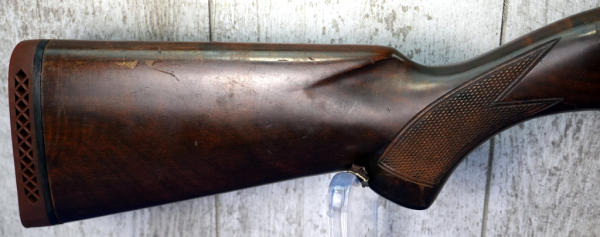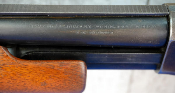 28" VR-BBL; smooth action; wood stock has field marks; rubber recoil pad; standard Ithaca engraved receiver; missing front bead sight; bluing loss on bottom of receiver; 2.75"; FC; USA: SN#185916; A-340
