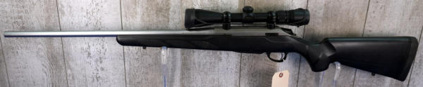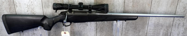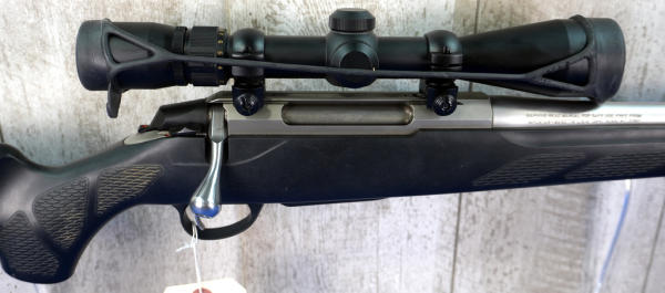 22" Stainless Barrel; smooth action; black synthetic stock; removable magazine; Nikon 3-9x40 Scope w/rubber caps; overall very clean used condition; Finland; SN#B11768; A-332