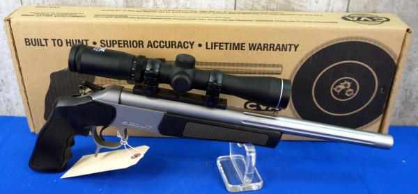 14" Fluted Barrel; black synthetic forearm & pistol grip; NcStar 2-7x32 scope; Mint & Unfired w/factory box; easy break action; Spain; SN#61-04-002310-14; A-307