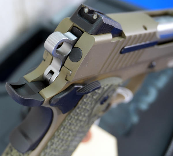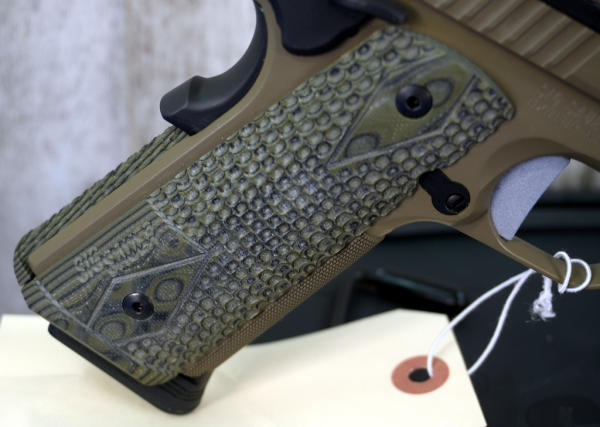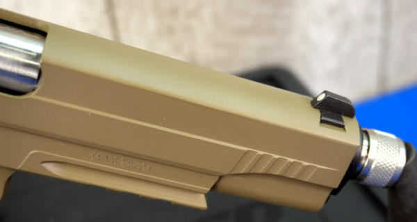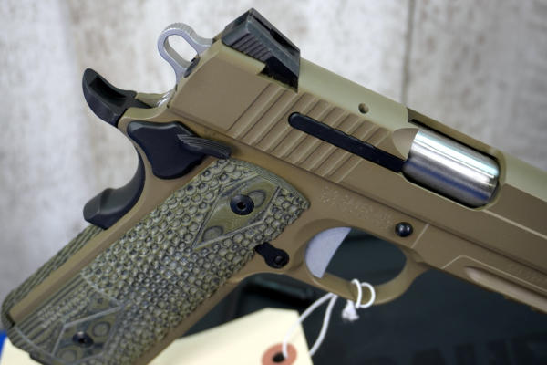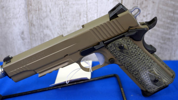 5.5" Stainless Barrel w/Threaded Muzzle; composite grips; military desert brown finish; night sights; factory hard case; 2-magazines; like new condition; USA; SN#54A024794; A-296