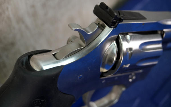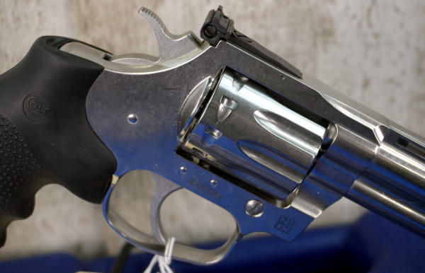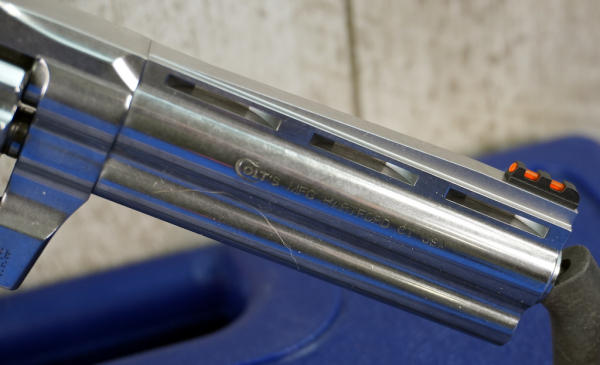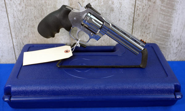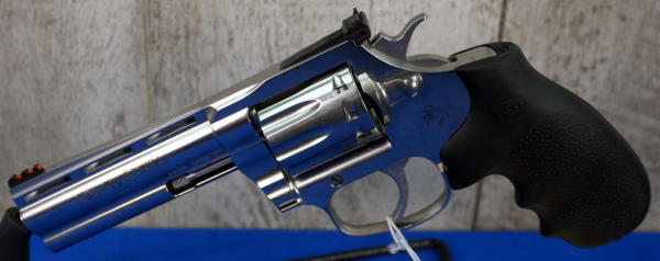 4.25" VR-Stainless Barrel w/hy-vis front sight & rear adjustable; 10-shot swing-out cylinder; finger groove rubber grips; factory hard case; mint & unfired; USA; SN#RA362594; A-323