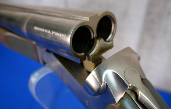 20" Stainless Barrels; easy break action w/extractors; two triggers; wood stock has distressed grey paint finish; rubber recoil pad; overall very nice condition; 3"; screw-in chokes; Brazil; SN#C883829-19; A-332
