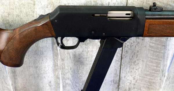 16" BBL w/threaded muzzle; wood stock w/rubber butt pad; removable magazine; like new condition; does have original box, not pictured, owner found it after guns were cataloged; USA: SN#270004627; A-347