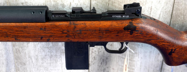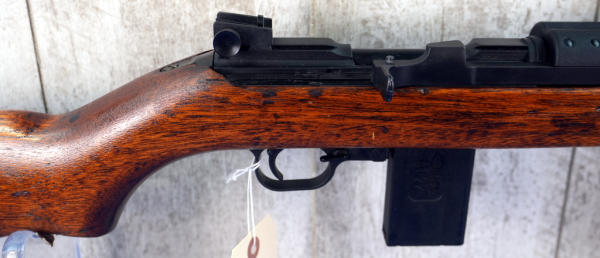 18" BBL; removable magazine; barrel & receiver look like new, wood stock looks like an old original carbine stock; metal butt plate; not sure if gun came this way or if someone put an old stock on it to make it look more authentic; either way , looks good! does have original box, not pictured, owner found it after guns were cataloged, it had a black synthetic stock inside which will also be included; Italy; SN#12D70520; A-347