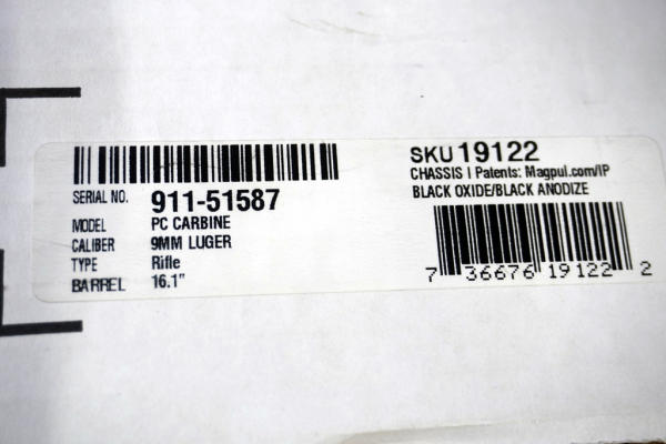 16.1" BBL. w/threaded muzzle; No Magazine; mint & unfired; factory box; extendable stock; picatinny rail; USA: SN#911-51587; A-318