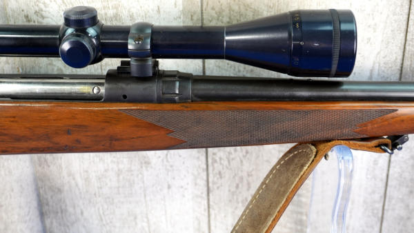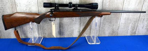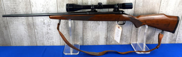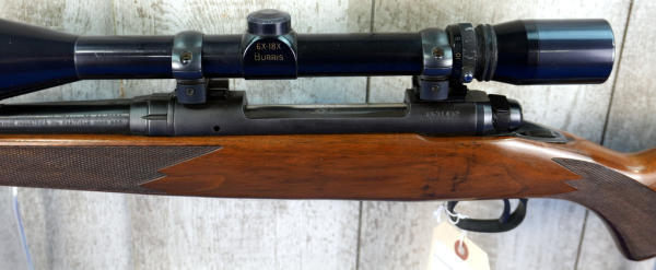 22" BBL; smooth action; wood stock has minor field marks; rubber butt pad; leather sling; Burris 6x-18x scope; overall clean used gun; USA; SN#E631432; A-322