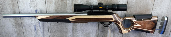 20" Varmint Stainless KIDD Barrel; DVG wood laminate stock w/pistol grip and adjustable butt pad & cheek rest; removable magazine; Cabela's 3-9x40 scope; looks near mint; great looking 10/22! USA; SN#RCS4-02434; A-339