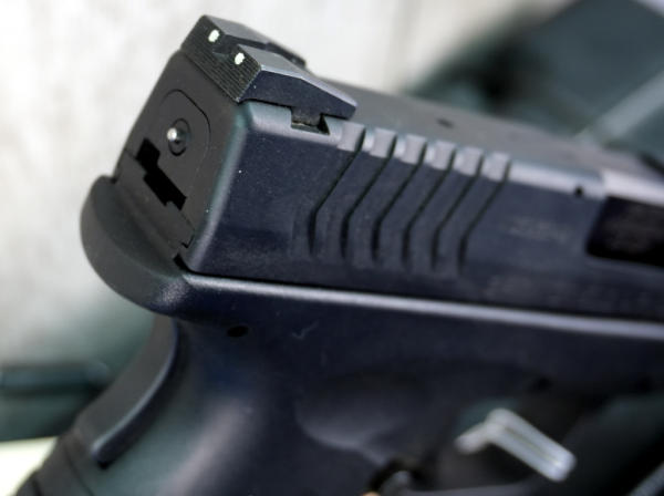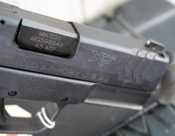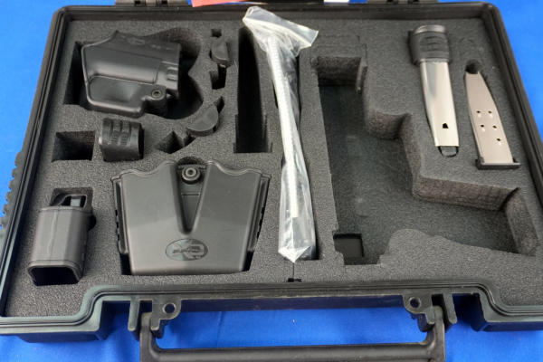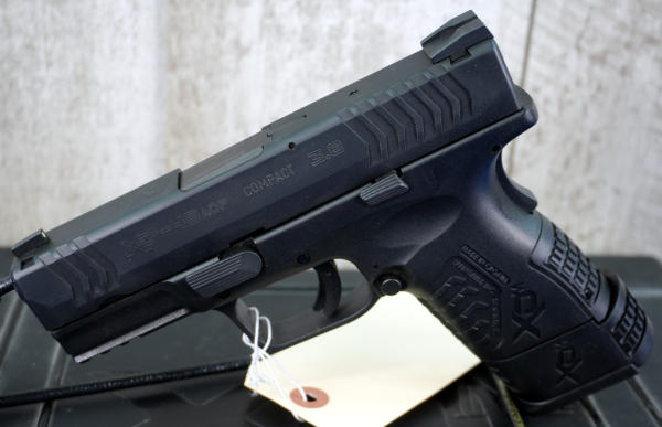 3.75" BBL.; black synthetic frame w/steel slide; night sights; 3-magazines; factory hard case w/accessories; like new condition; USA: SN#MG598649; A-351
