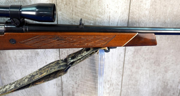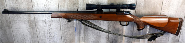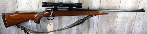 24" BBL.; smooth action; camo sling; wood stock w/nice checkering and rubber recoil pad; has some field marks on wood; nice bluing; Weaver V7 scope; nice looking gun, not sure we've had a Paker-Hale come through before; gold trigger; England; SN#R-65445; A-332