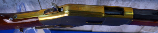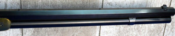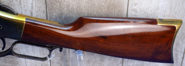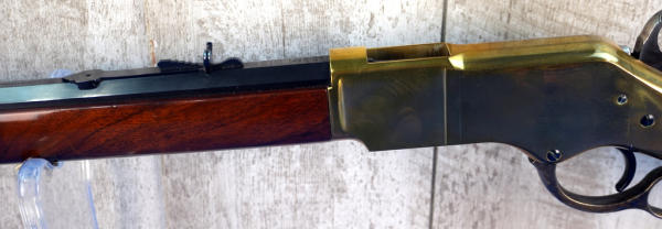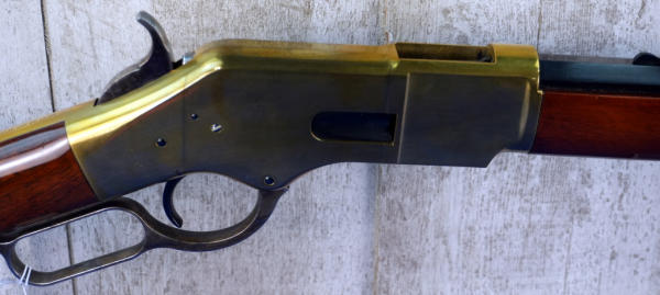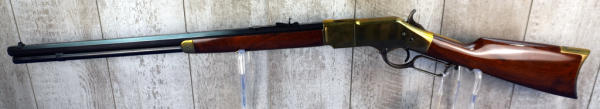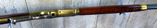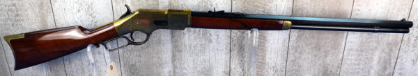 24" Oct. BBL.; smooth action; brass receiver, butt plate & forend cap; case hardened hammer & lever; looks unfired; minor scratches on wood stock from storage; nice looking firearm; Italy; SN#W22989; A-347
