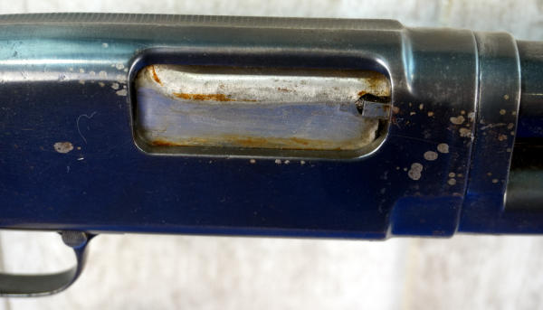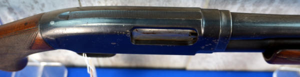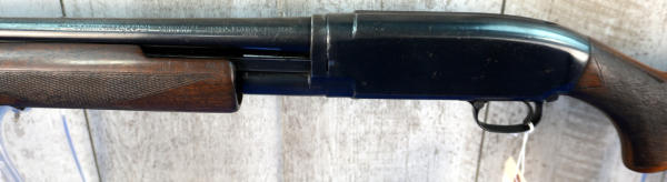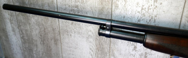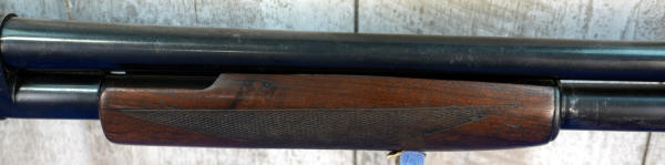 28" Rnd. BBL.; smooth action; wood stock w/checkering; plastic butt plate; has some spotting & bluing loss on receiver; scratches in bluing on top of barrel in front of the receiver; 2.75"; FC; USA; SN#1058470; A-349