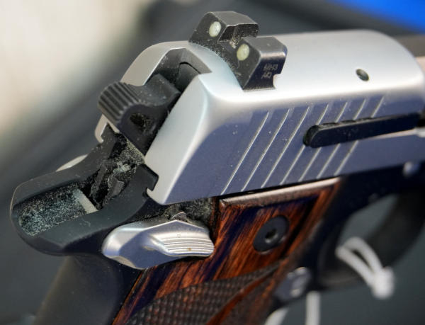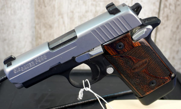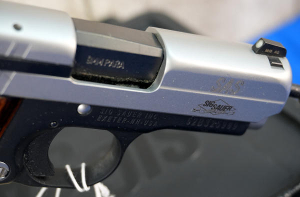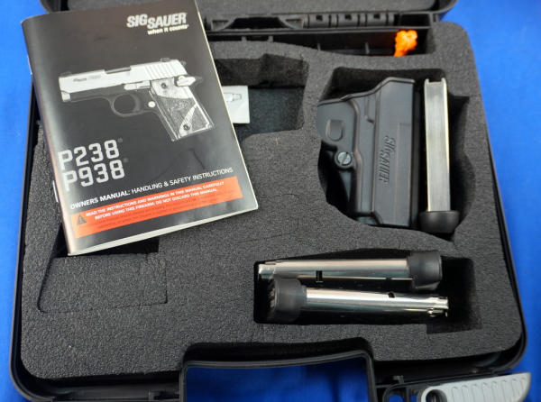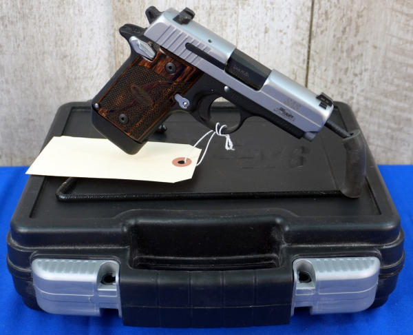 3" BBL; black body w/stainless frame; wood grain grips; MH3 AQ Night Sights; factory hard case; 4-magazines w/plastic holster; looks fired but nice used condition; USA; SN#52B325909; A-347