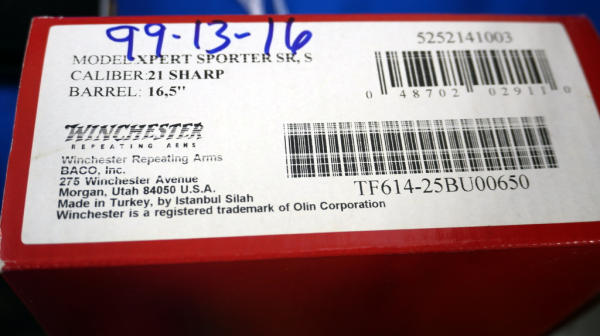 never had a 21 Sharp caliber come through, it's a redesigned 22LR w/better ballistics & trajectory; 16.5" BBL. w/threaded muzzle; smooth action; fired very little and near mint w/factory box; removable magazine; wood stock w/plastic butt plate; Turkey; SN#TF614-25BU00650; A-334