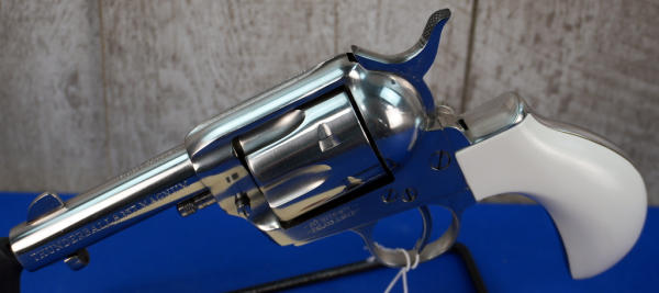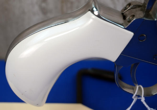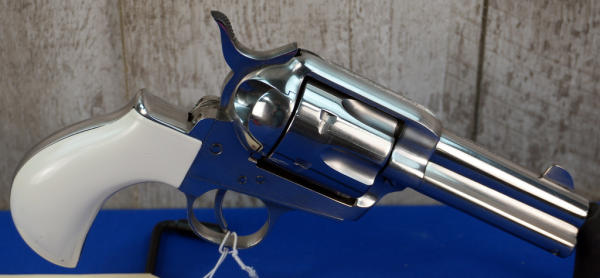 3.5" Stainless Barrel; smooth white bird head grips; 6-shot fixed cylinder; nice heavy revolver, well built; Italy; SN#E52101; A-347
