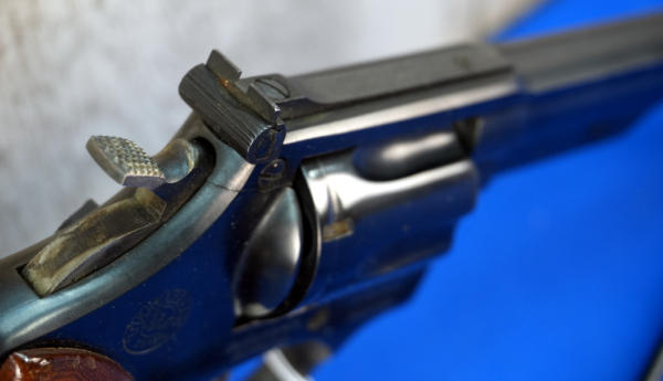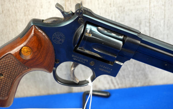 6" BBL.; wood checkered grips; 6-shot swing out cylinder; case hardened hammer & trigger; Brazil; SN#5234384; A-275