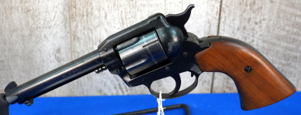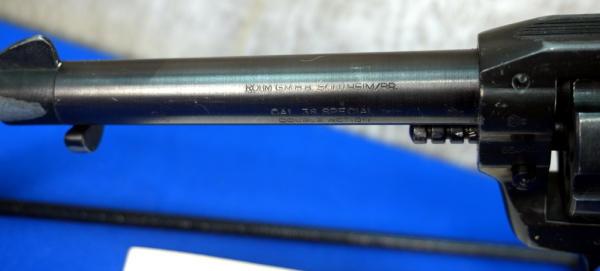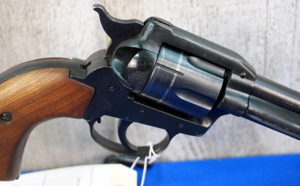 5" BBL.; smooth wood grips; has bluing loss on barrel and drag lines on cylinder; 6-shot fixed cylinder; canvas holster; Germany; SN#23380; A-351