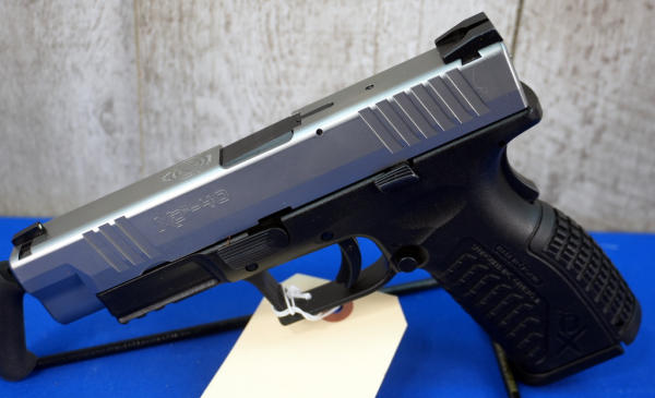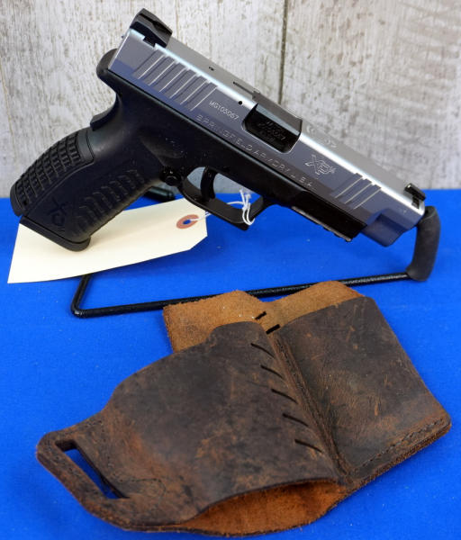 4.5" BBL.; black synthetic frame w/stainless slide; night sights; leather holster; like new condition; USA: SN#MG105067; A-332