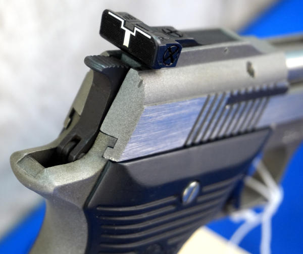 6" Stainless Barrel; black synthetic grips; 2-magazines; non-factory hard case; red ramp front sight w/rear white outline; looks unfired; USA; SN#M16476; A-351