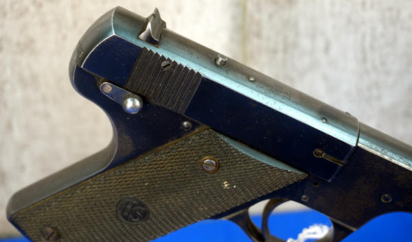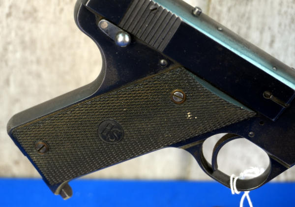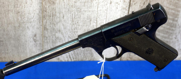6.75" BBL.; black plastic checkered grips; 2-magazines; factory box has some wear; bluing is thin on parts; USA: SN#93331; A-318