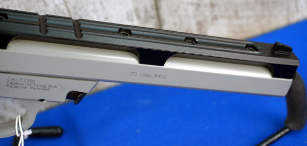 7" Stainless Barrel w/Full Length picatinny rail; rubber grips; canvas holster; like new condition; USA; SN#UAV9902; A-332
