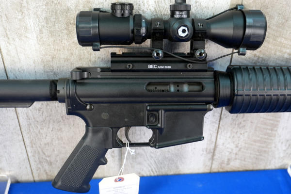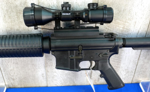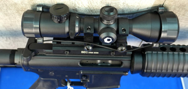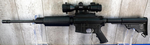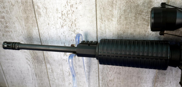 16.5" BBL. w/1" flash hider; extendable stock; no magazine; Barska 3-9x42 scope on BEC ARM 2030 Picatinny Rail Mount; like new condition; USA: SN#N0006422; A-275