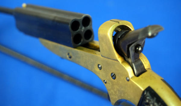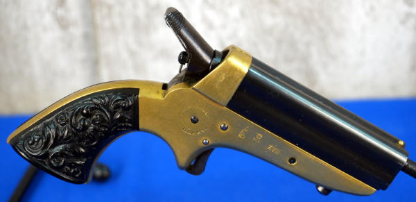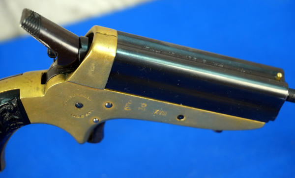 2.5" BBLs; brass frame; plastic grips; easy open action; non-factory hard case; spur trigger; Italy; SN#214834; A-323