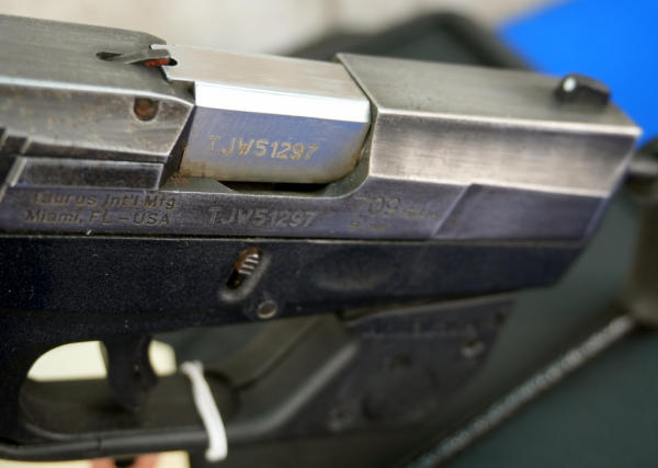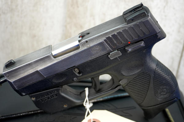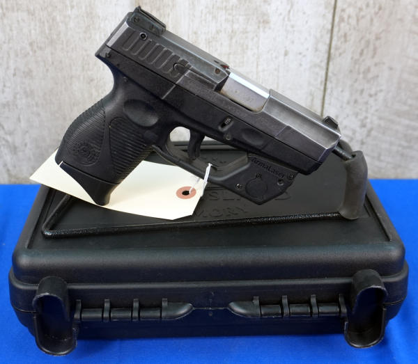 3.25" Stainless barrel; black synthetic frame; night sights; non-factory hard case; ArmaLaser Red Laser sight works; bluing on slide is thin; Brazil; SN#TJW51297; A-340