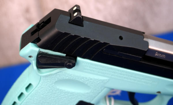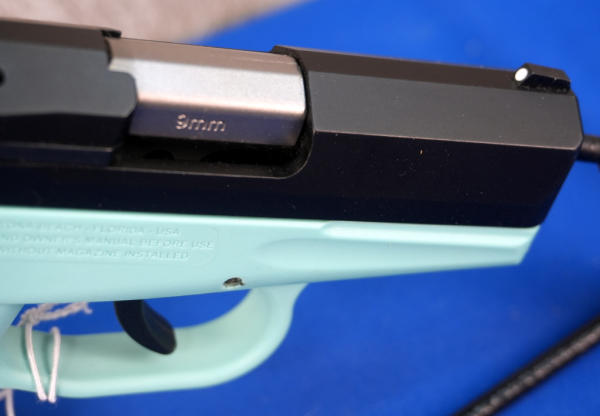 3" Stainless Barrel; 2-tone w/teal synthetic body and blued steel slide; night sights; non-factory hard case; 4-magazines; USA; SN#941106; A-347