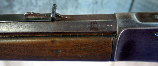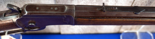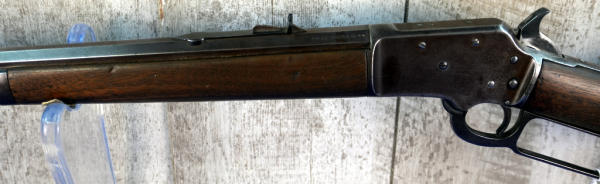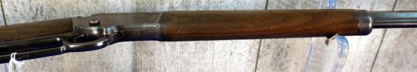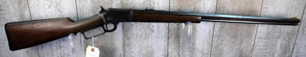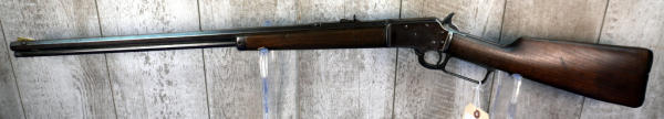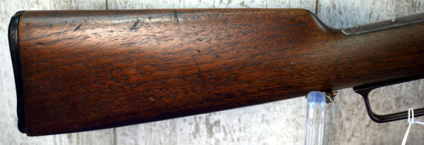 24" Oct. BBL.; smooth action; bluing has brown patina; wood stock shows use wear; plastic butt plate his some chips on the edges; USA: SN#A4701; A-304
