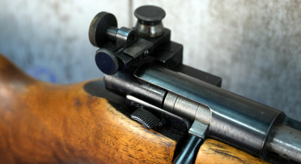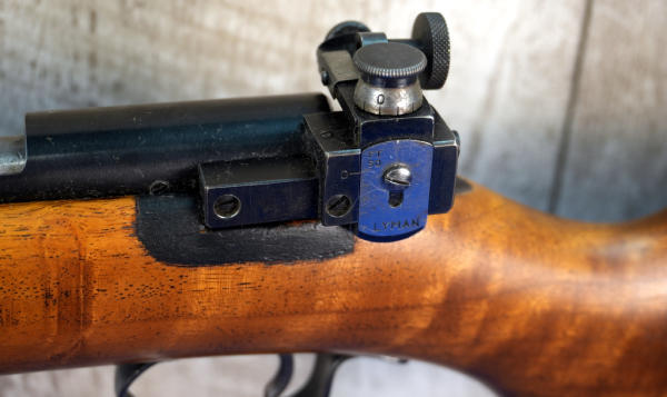 25" BBL. w/Globe front sight & Lyman rear peep sight; smooth action; extremely nice wood stock w/plastic butt plate; very clean condition for it's age; USA; No SN#; A-304