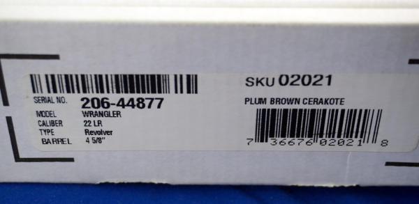 4.5" BBL.; black plastic checkered grips; Plum Brown Cerakote; Mint & unfired w/factory box; USA: SN#206-44877; A-308