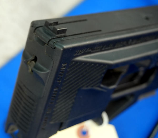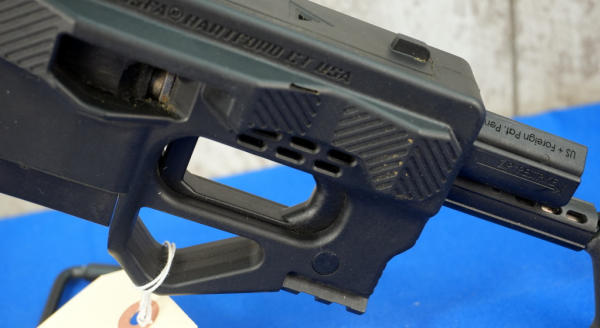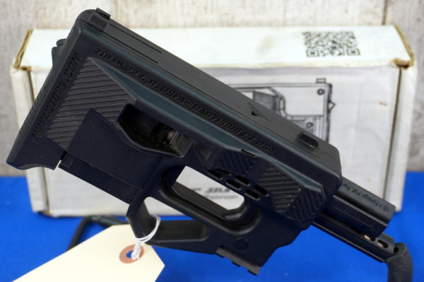 5" BBL.; black synthetic body; uses a Ruger 10/22 magazine; mint & unfired w/factory box; considered the worst gun ever designed, more of a novelty and coffee talk piece! Hard to find; USA: SN#AAM487; A-347