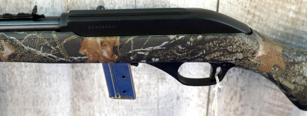 18" BBL.; Realtree Hardwoods Synthetic Camo stock; removable magazine; Whitetails Unlimited medallion in stock; like new condition; USA; SN#93438060; A-332