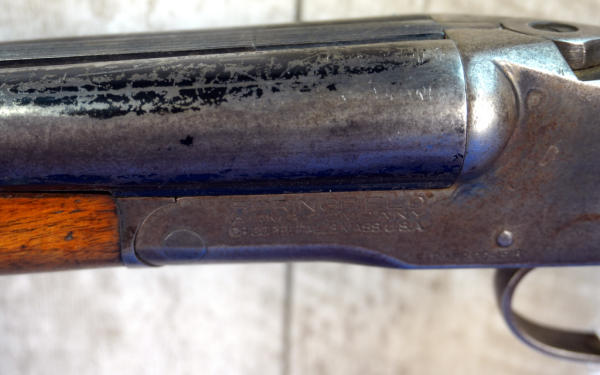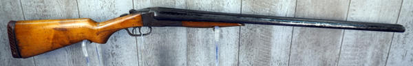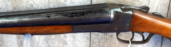 29.5" BBLs w/heaving bluing loss & scratches; easy break action w/extractors; two triggers; receiver has bluing loss; stock has a few small cracks and field use; rubber recoil pad is not original; Left-FC, Right-MC; bores need cleaning; USA: SN#2975; A-331