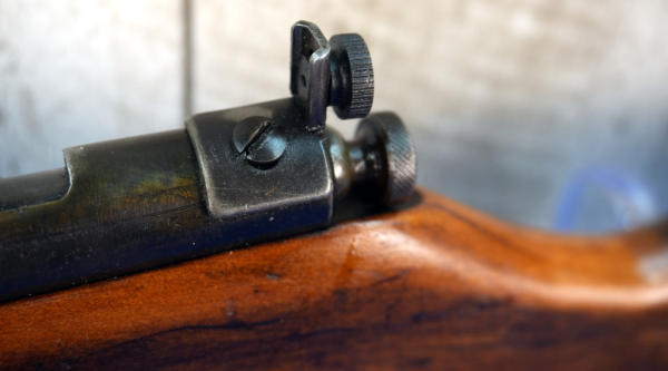 20" BBL.; smooth action; solid wood stock w/nice finish; no butt plate; rear peep sight; USA; No SN#; A-304