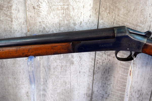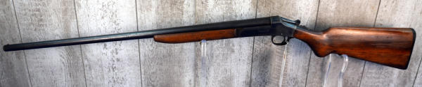 28" BBL.; stiff break action; bluing is thin and has brown patina starting; wood is solid w/some finish loss; plastic butt plate; FC; USA; SN#A7477; A-304