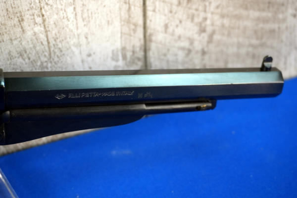 no transfer needed; 8" Oct. BBL.; smooth white grips; brass trigger guard; bluing has some scratches; Italy; SN#R333434