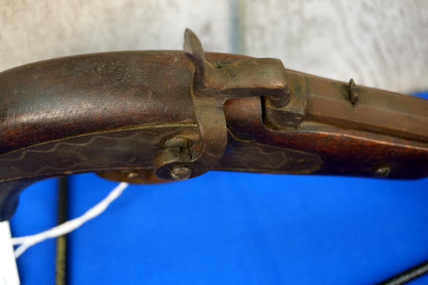 4" Oct. BBL; has some surface rusting; wood frame; mech works; no mfg. or markings anywhere; No Transfer