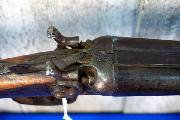 30.25" BBLs; easy break action; both mechs work; has surface rusting and finish loss; metal butt plate; barrel marked "Twist Belgium"; No Transfer; SN# hard to read on the receiver flat;