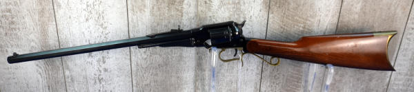 18" Oct.; very nice bluing; looks unfired; brass trigger guard & butt plate; has some wood missing behind receiver; Italy; SN#89380; No Transfer Needed