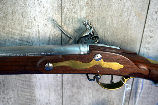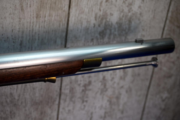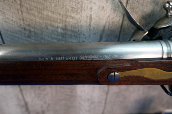 42" Stainless Barrel; very nice wood w/brass accents; comes with a long leather sleeve; looks unfired; does have original box, not pictured, owner found it after guns were cataloged; Italy; SN#BB18401; No Transfer Needed